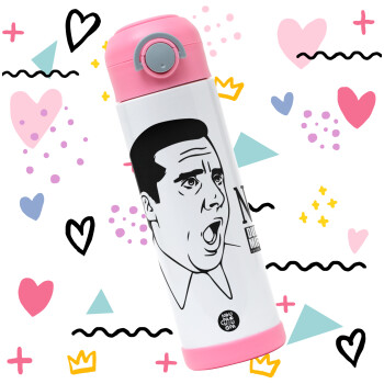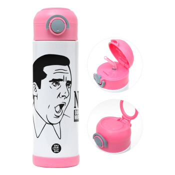 The office Michael NO!!!, Easter candle, Childrens hot water bottle, stainless steel, with safety straw, PINK (500ml)