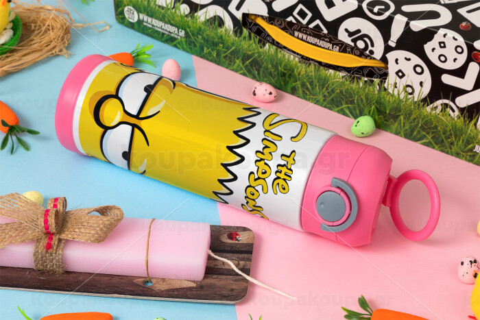 The Simpsons Bart, Easter candle, Childrens hot water bottle, stainless steel, with safety straw, PINK (500ml)