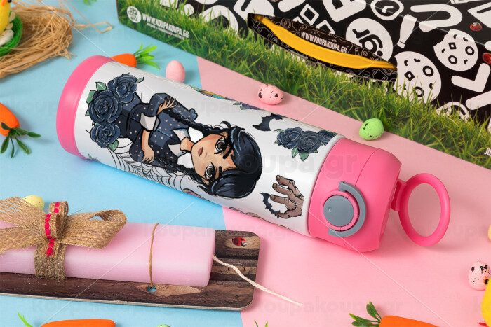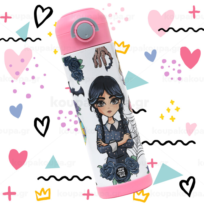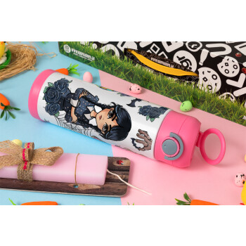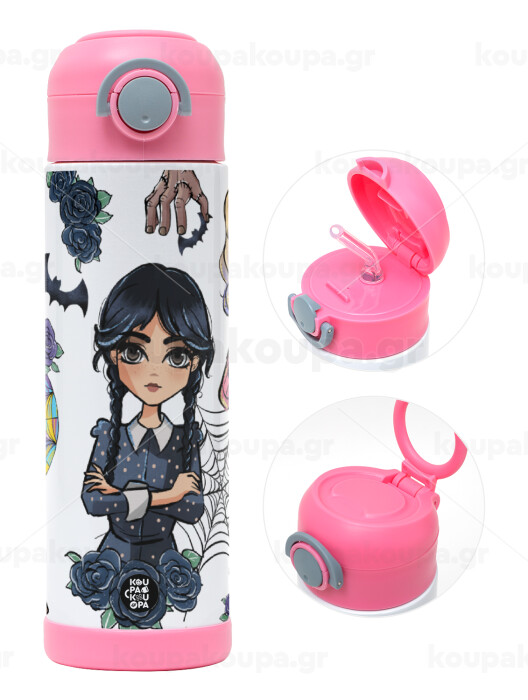 Wednesday and Enid Sinclair, Easter candle, Childrens hot water bottle, stainless steel, with safety straw, PINK (500ml)