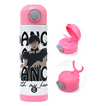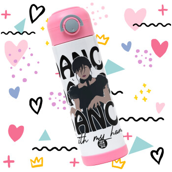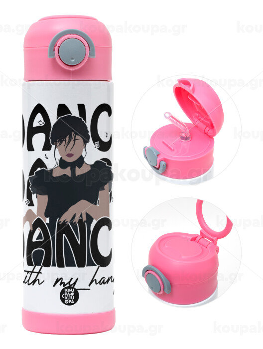 Wednesday dance dance dance, Easter candle, Childrens hot water bottle, stainless steel, with safety straw, PINK (500ml)