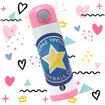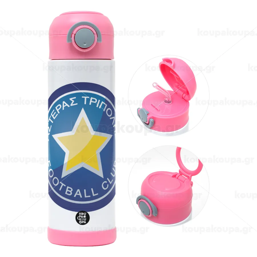 Asteras Tripolis, Easter candle, Childrens hot water bottle, stainless steel, with safety straw, PINK (500ml)