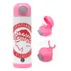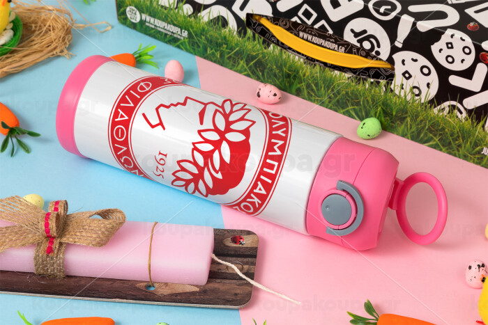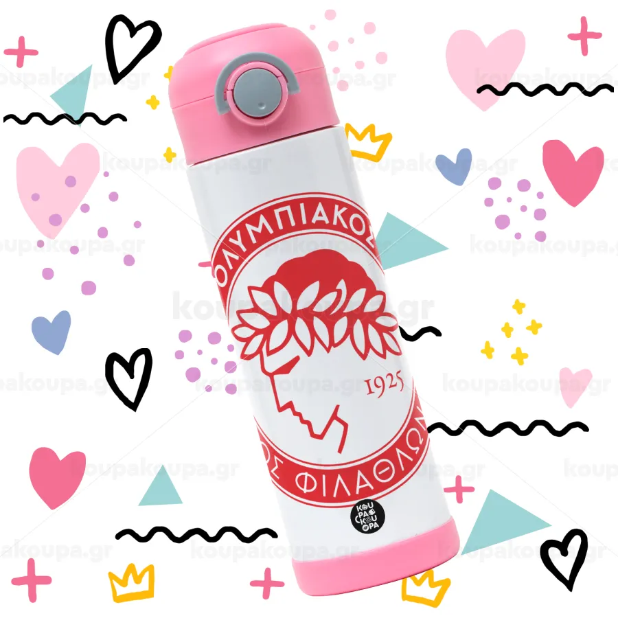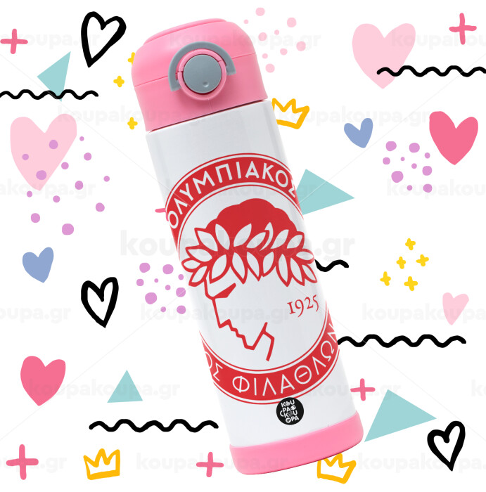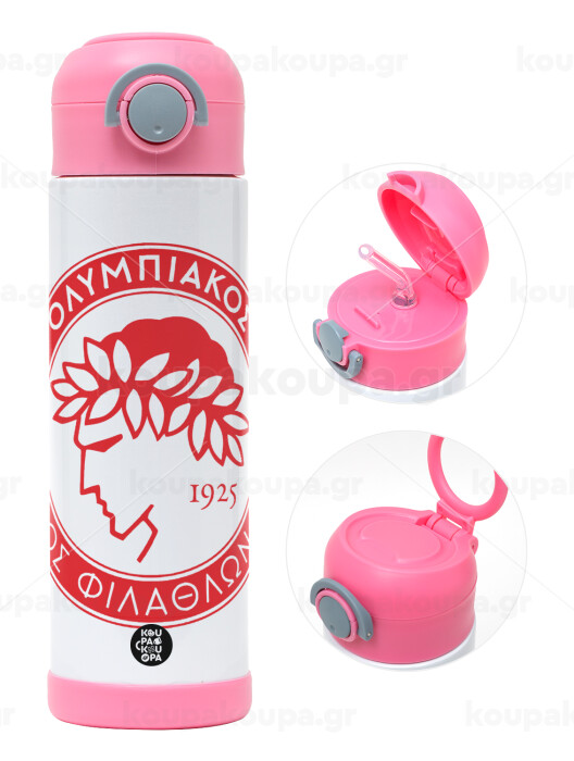 Ολυμπιακός, Easter candle, Childrens hot water bottle, stainless steel, with safety straw, PINK (500ml)