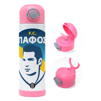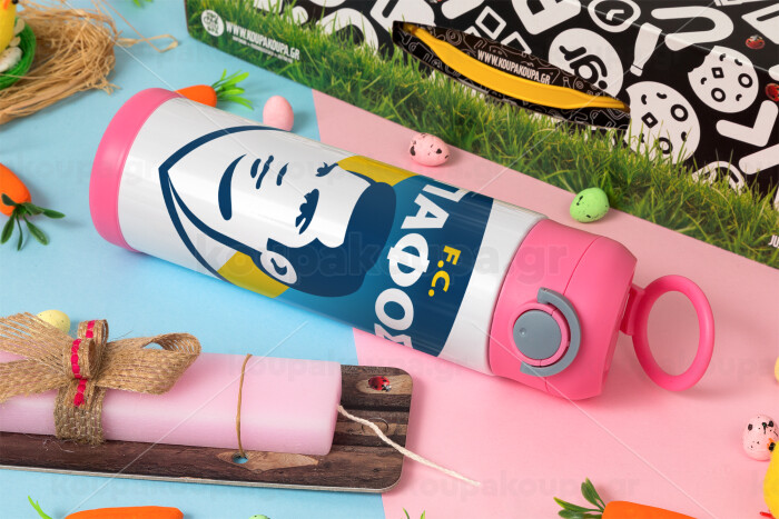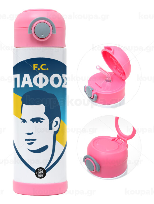 Πάφος FC, Easter candle, Childrens hot water bottle, stainless steel, with safety straw, PINK (500ml)