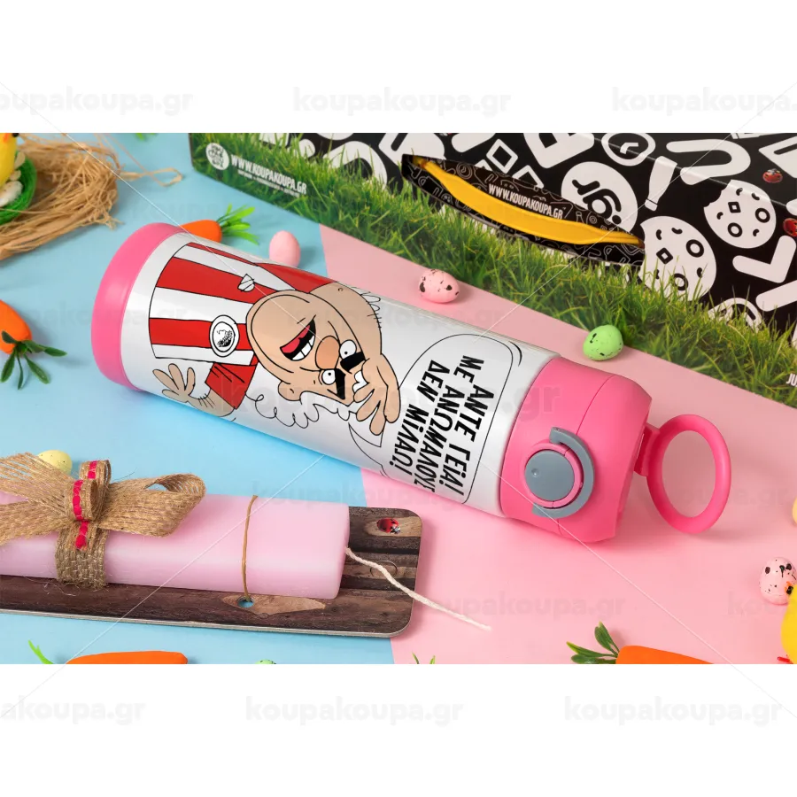 Τάκης, Άντε γεια, με ανώμαλους δεν μιλάω!, Easter candle, Childrens hot water bottle, stainless steel, with safety straw, PINK (500ml)