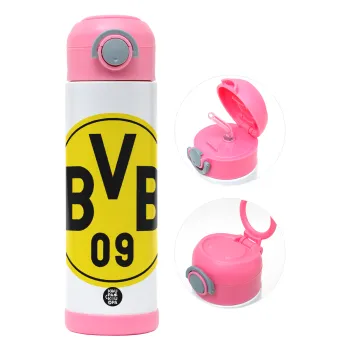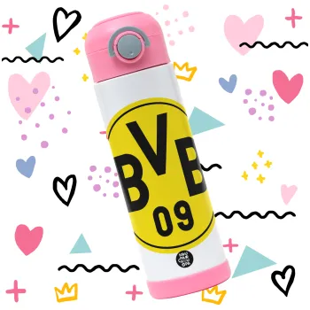 BVB Dortmund, Easter candle, Childrens hot water bottle, stainless steel, with safety straw, PINK (500ml)