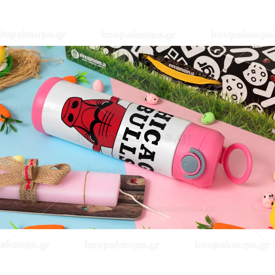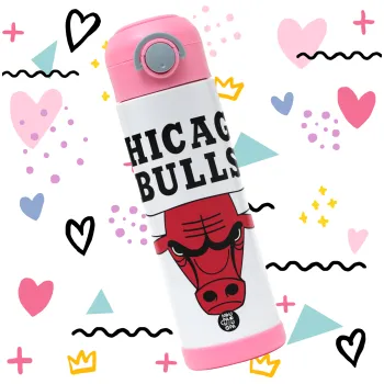 Chicago Bulls, Easter candle, Childrens hot water bottle, stainless steel, with safety straw, PINK (500ml)