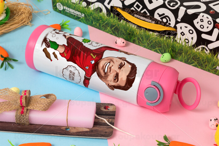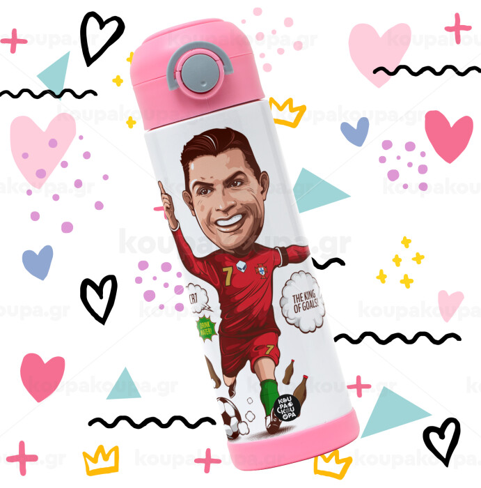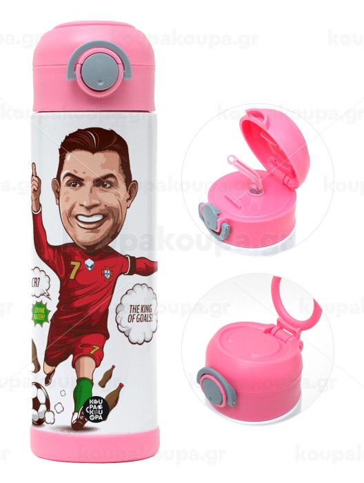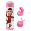 Cristiano Ronaldo, Easter candle, Childrens hot water bottle, stainless steel, with safety straw, PINK (500ml)