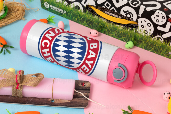 FC Bayern Munich, Easter candle, Childrens hot water bottle, stainless steel, with safety straw, PINK (500ml)