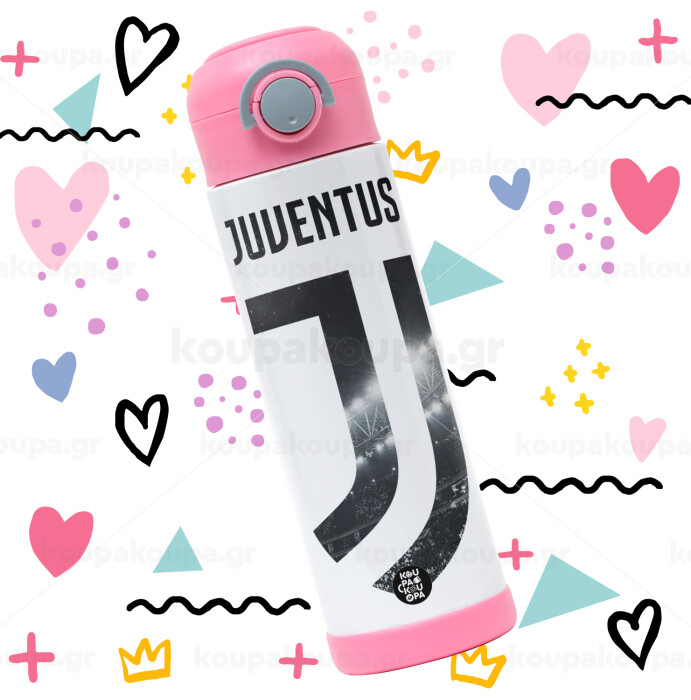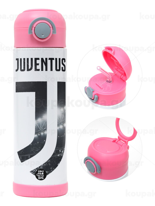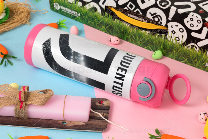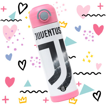 FC Juventus, Easter candle, Childrens hot water bottle, stainless steel, with safety straw, PINK (500ml)