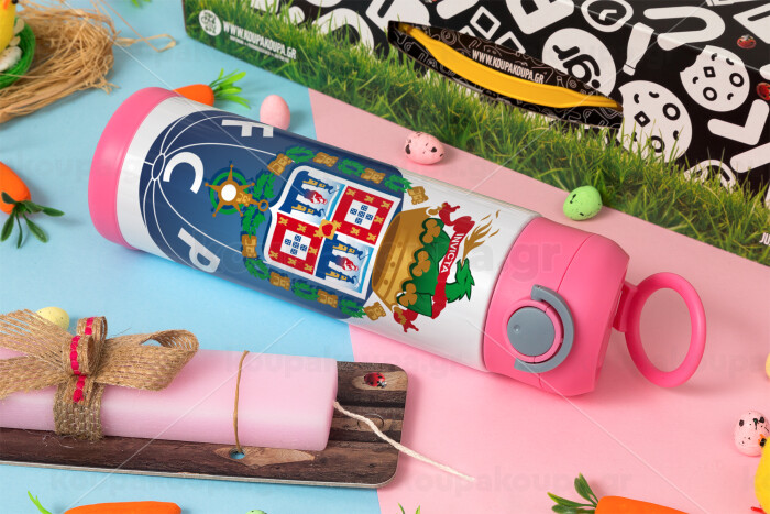 FCP, Easter candle, Childrens hot water bottle, stainless steel, with safety straw, PINK (500ml)