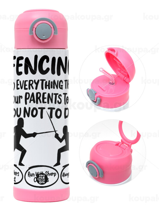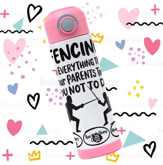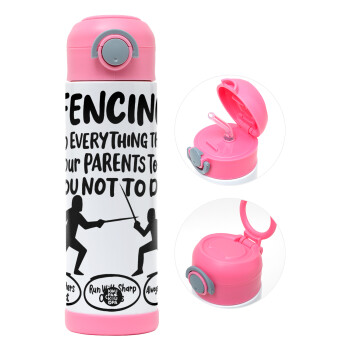 Fencing, do everything that your parents told you not to do., Easter candle, Childrens hot water bottle, stainless steel, with safety straw, PINK (500ml)