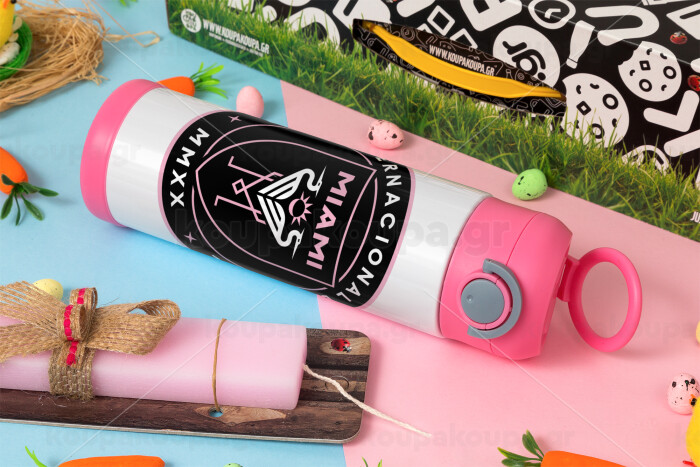 Inter Miami CF, Easter candle, Childrens hot water bottle, stainless steel, with safety straw, PINK (500ml)