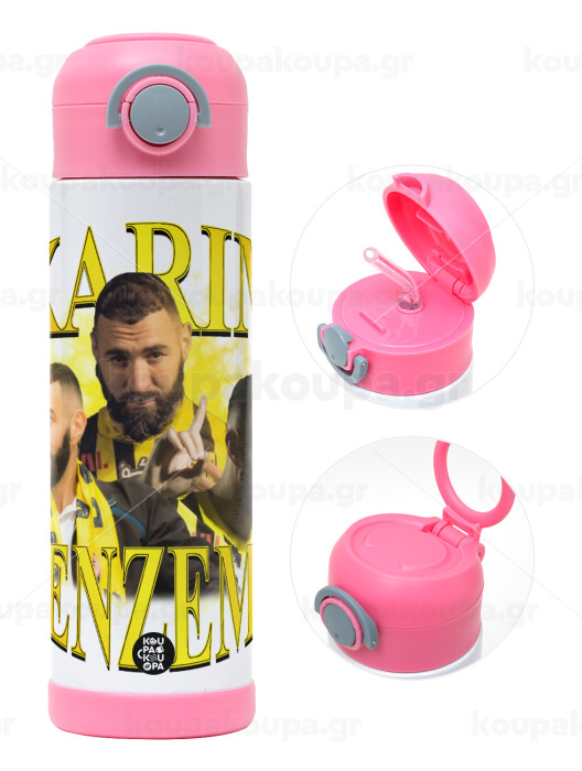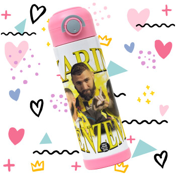 Karim Benzema, Easter candle, Childrens hot water bottle, stainless steel, with safety straw, PINK (500ml)