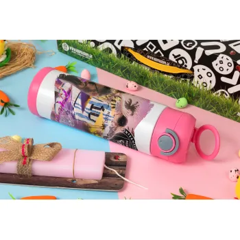 Lionel Messi Miami, Easter candle, Childrens hot water bottle, stainless steel, with safety straw, PINK (500ml)