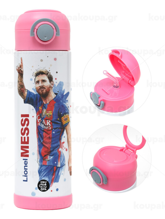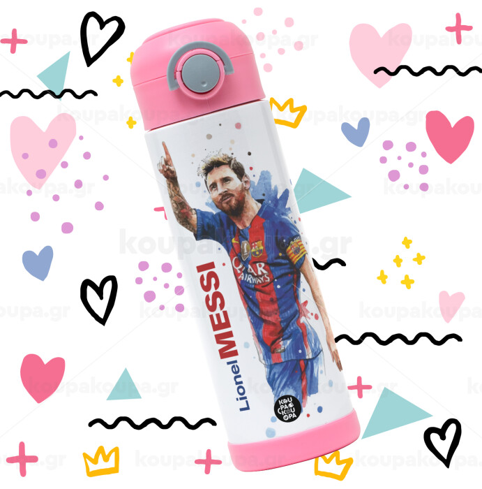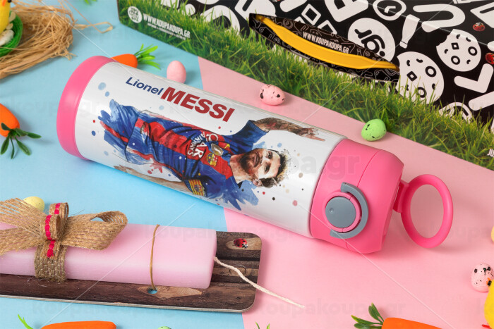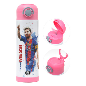 Lionel Messi, Easter candle, Childrens hot water bottle, stainless steel, with safety straw, PINK (500ml)