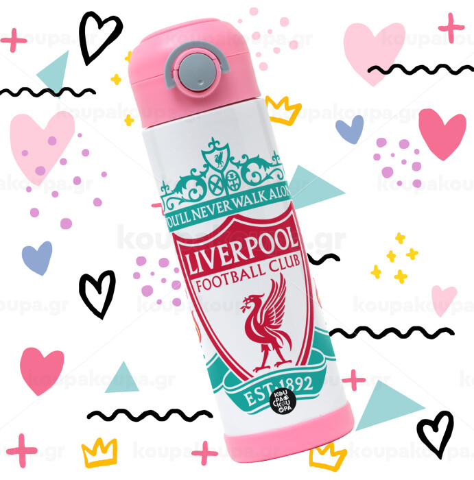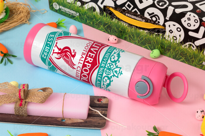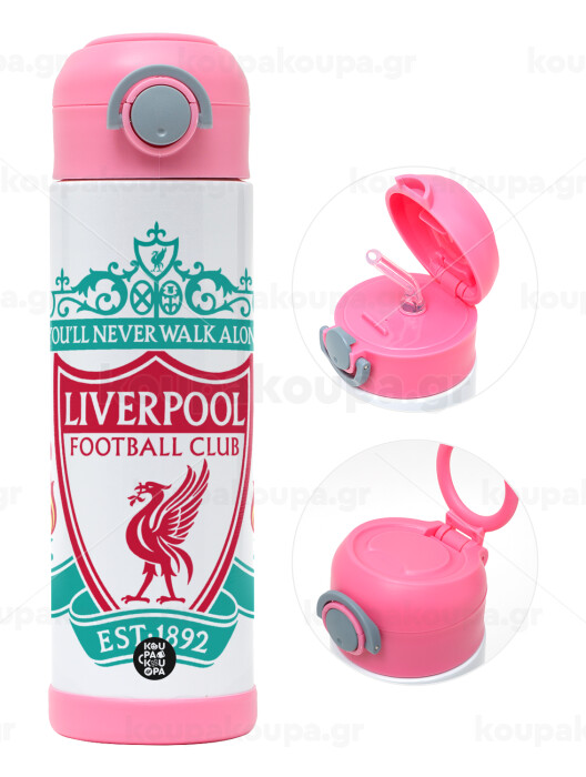 Liverpool, Easter candle, Childrens hot water bottle, stainless steel, with safety straw, PINK (500ml)