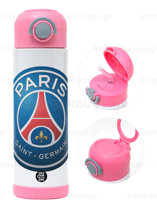 Paris Saint-Germain F.C., Easter candle, Childrens hot water bottle, stainless steel, with safety straw, PINK (500ml)