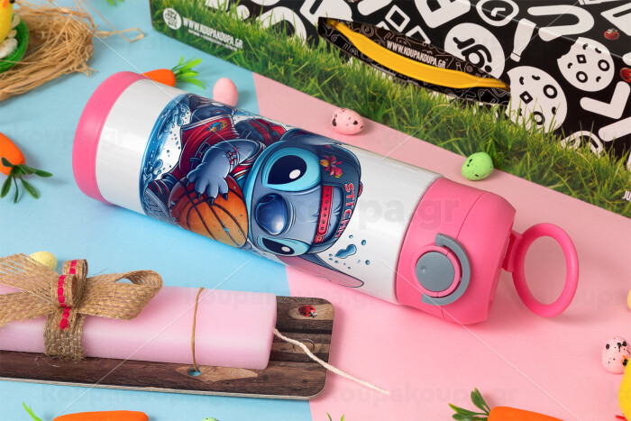 Stitch Basketball, Easter candle, Childrens hot water bottle, stainless steel, with safety straw, PINK (500ml)