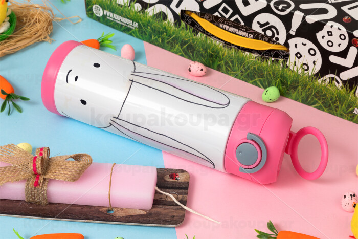 Ο λαγός του πάσχα, Easter candle, Childrens hot water bottle, stainless steel, with safety straw, PINK (500ml)
