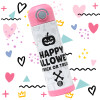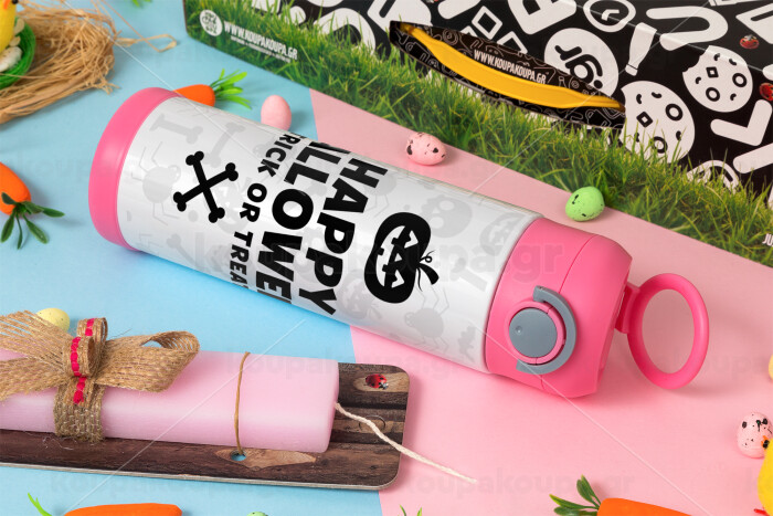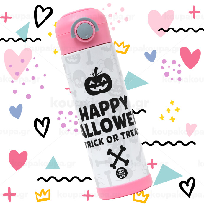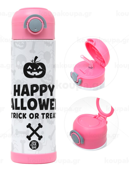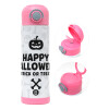 Happy Halloween pumpkin, Easter candle, Childrens hot water bottle, stainless steel, with safety straw, PINK (500ml)
