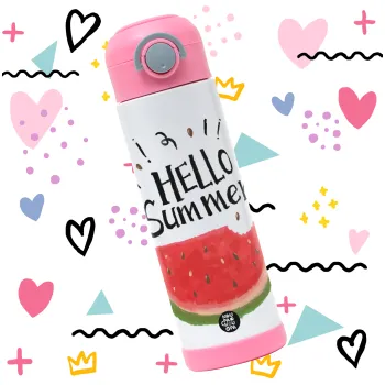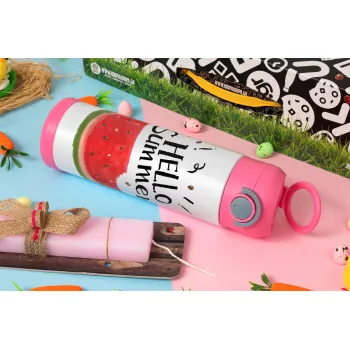 Summer Watermelon, Easter candle, Childrens hot water bottle, stainless steel, with safety straw, PINK (500ml)