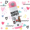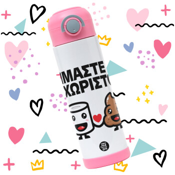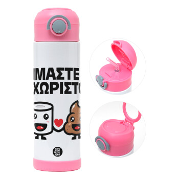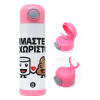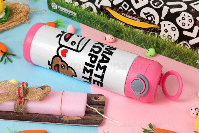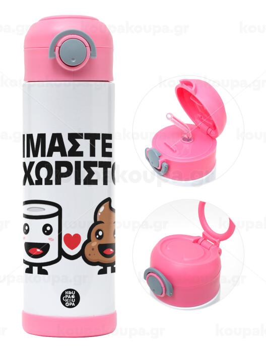 Είμαστε αχώριστοι, Easter candle, Childrens hot water bottle, stainless steel, with safety straw, PINK (500ml)