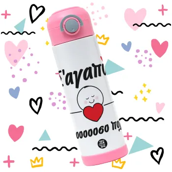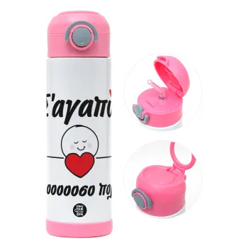 Σ΄αγαπώ τόοοοσο πολύ (Κορίτσι)!!!, Easter candle, Childrens hot water bottle, stainless steel, with safety straw, PINK (500ml)