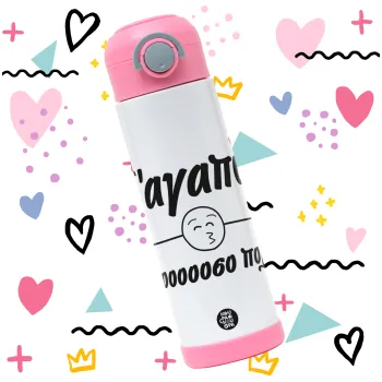 Σ΄ αγαπώ τόοοοοοσο πολύ!!!, Easter candle, Childrens hot water bottle, stainless steel, with safety straw, PINK (500ml)