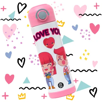 Couple, I love you, Easter candle, Childrens hot water bottle, stainless steel, with safety straw, PINK (500ml)