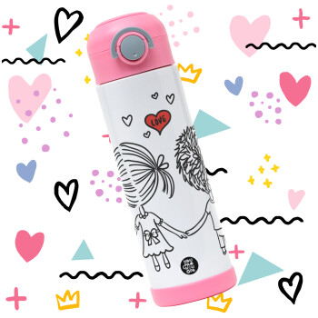 Hold my hand for ever, Easter candle, Childrens hot water bottle, stainless steel, with safety straw, PINK (500ml)