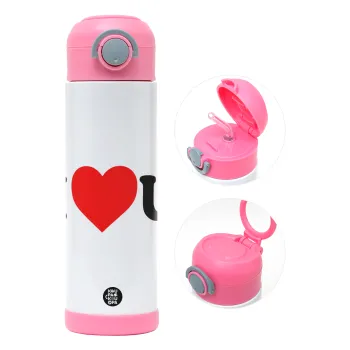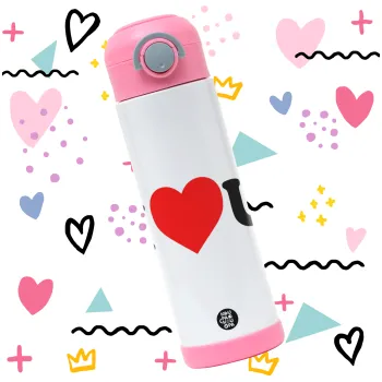 I ❤️ U, Easter candle, Childrens hot water bottle, stainless steel, with safety straw, PINK (500ml)