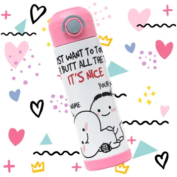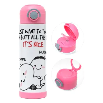 I Just Want To Touch Your Butt All The Time, Easter candle, Childrens hot water bottle, stainless steel, with safety straw, PINK (500ml)