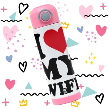 I Love my Wife, Easter candle, Childrens hot water bottle, stainless steel, with safety straw, PINK (500ml)