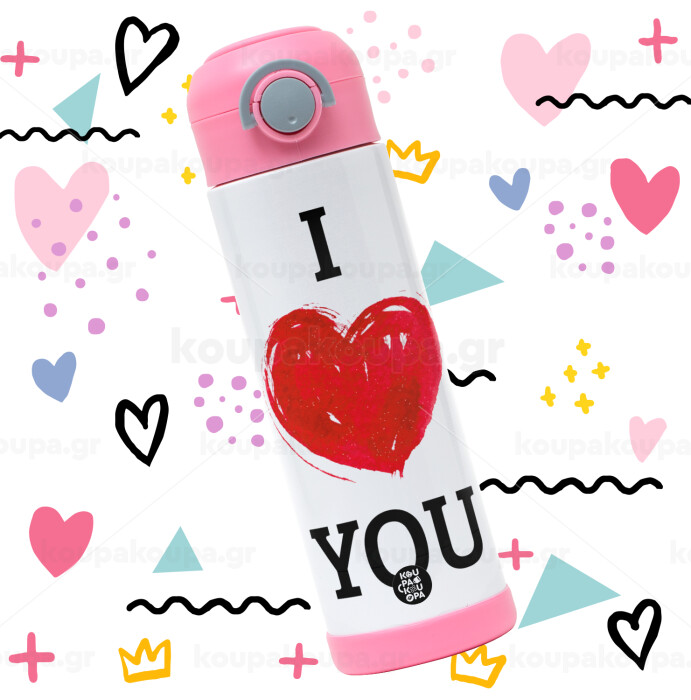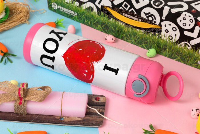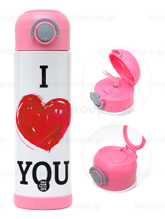 I Love You, Easter candle, Childrens hot water bottle, stainless steel, with safety straw, PINK (500ml)