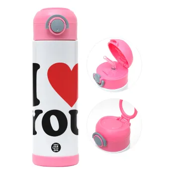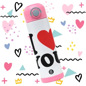I LOVE YOU, Easter candle, Childrens hot water bottle, stainless steel, with safety straw, PINK (500ml)