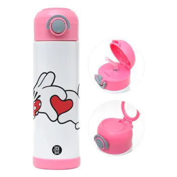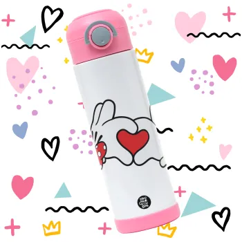 Love hands, Easter candle, Childrens hot water bottle, stainless steel, with safety straw, PINK (500ml)