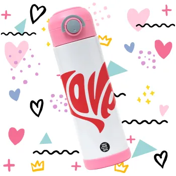 Love, Easter candle, Childrens hot water bottle, stainless steel, with safety straw, PINK (500ml)