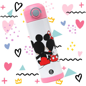 mickey and minnie hags, Easter candle, Childrens hot water bottle, stainless steel, with safety straw, PINK (500ml)