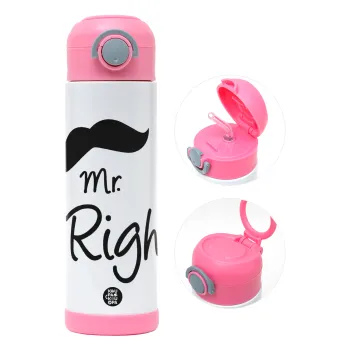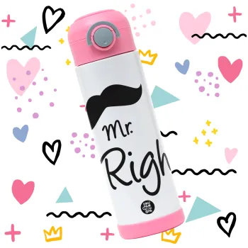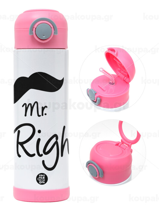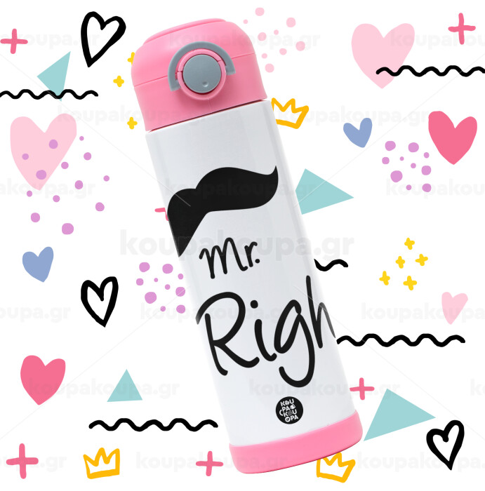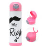 Mr right Mustache, Easter candle, Childrens hot water bottle, stainless steel, with safety straw, PINK (500ml)