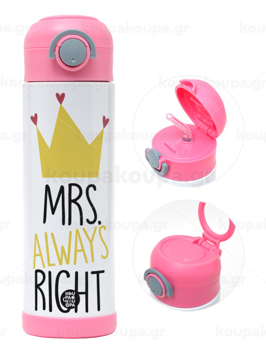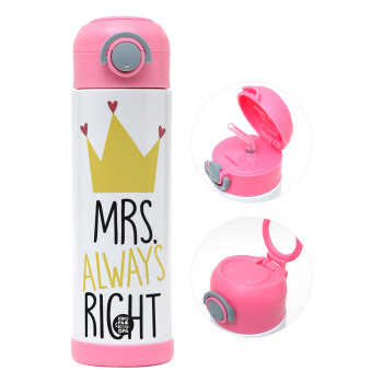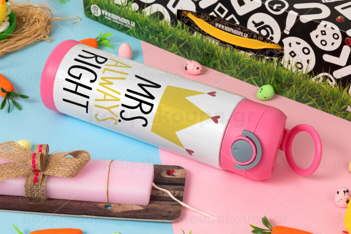 Mrs "Always" right, Easter candle, Childrens hot water bottle, stainless steel, with safety straw, PINK (500ml)