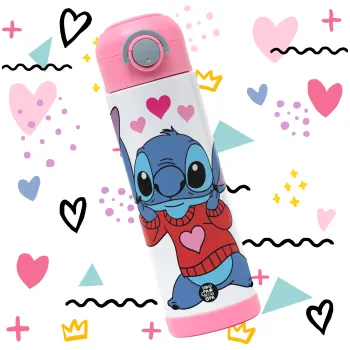 Stitch heart, Easter candle, Childrens hot water bottle, stainless steel, with safety straw, PINK (500ml)