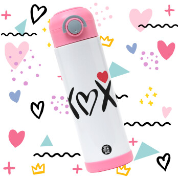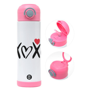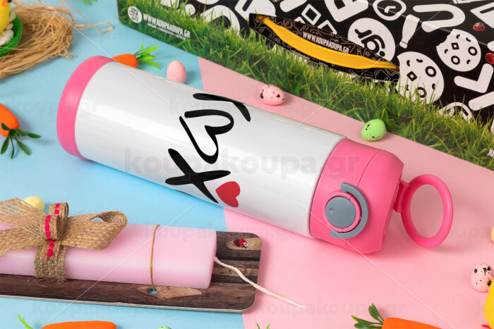 xoxo, Easter candle, Childrens hot water bottle, stainless steel, with safety straw, PINK (500ml)