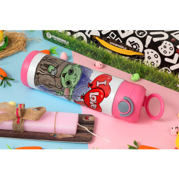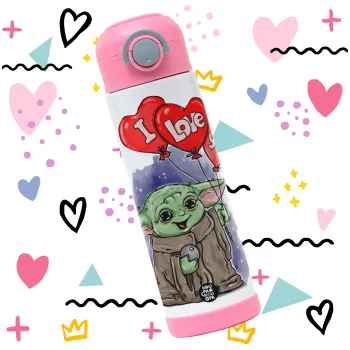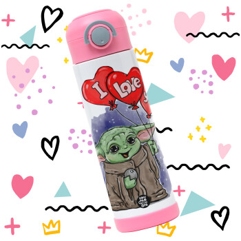 Yoda, i love you, Easter candle, Childrens hot water bottle, stainless steel, with safety straw, PINK (500ml)
