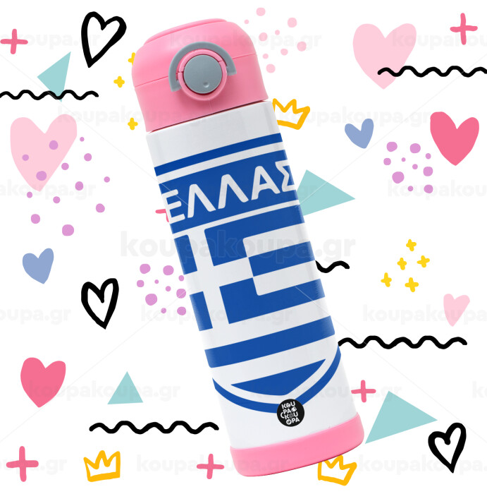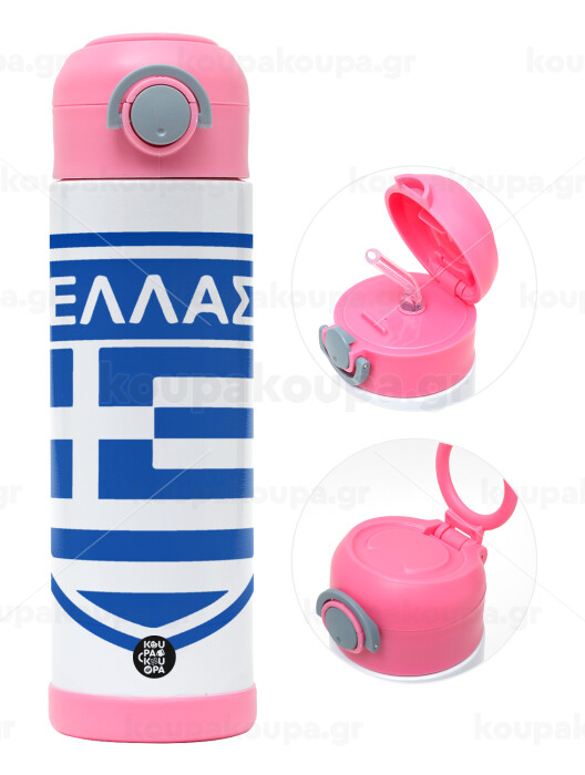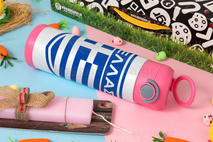 Hellas, Easter candle, Childrens hot water bottle, stainless steel, with safety straw, PINK (500ml)