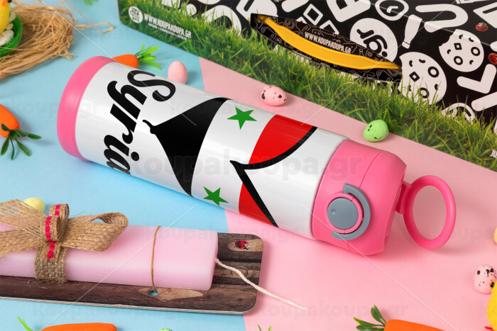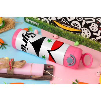 Syria flag, Easter candle, Childrens hot water bottle, stainless steel, with safety straw, PINK (500ml)