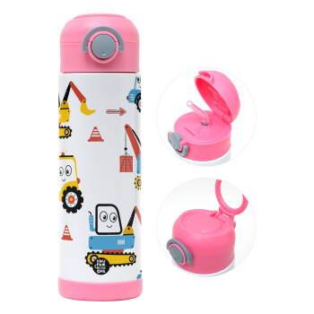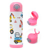 Hand drawing building truck, Easter candle, Childrens hot water bottle, stainless steel, with safety straw, PINK (500ml)