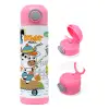 Kids Fisherman, Easter candle, Childrens hot water bottle, stainless steel, with safety straw, PINK (500ml)