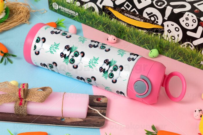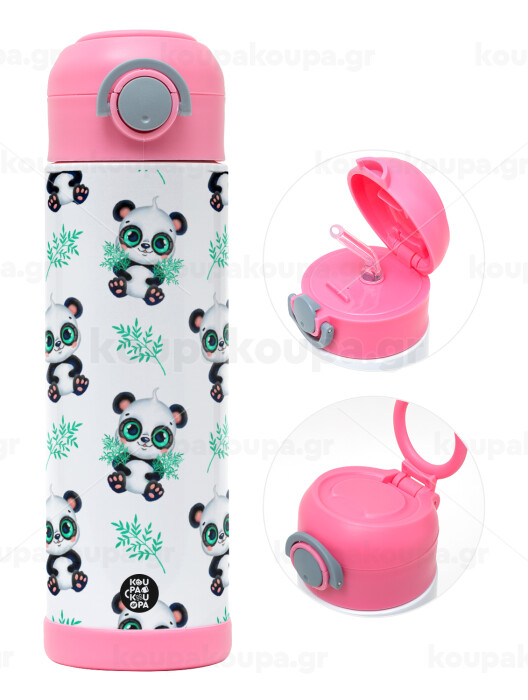 Panda, Easter candle, Childrens hot water bottle, stainless steel, with safety straw, PINK (500ml)