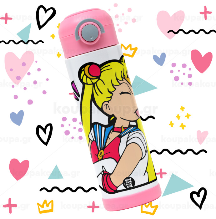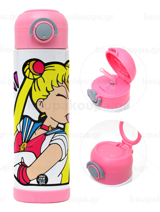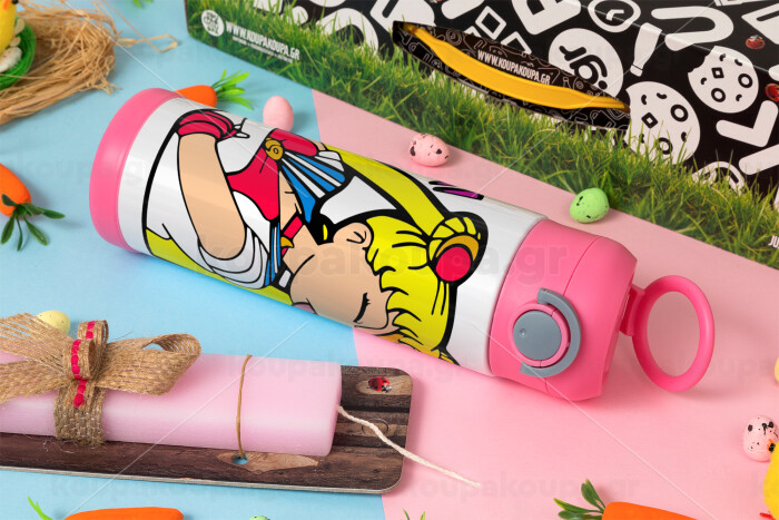Sailor Moon, Easter candle, Childrens hot water bottle, stainless steel, with safety straw, PINK (500ml)