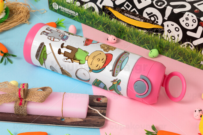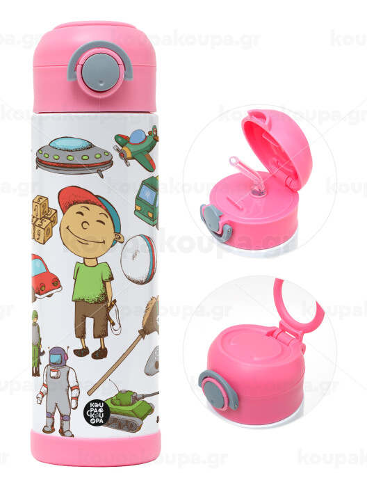 Toys Boy, Easter candle, Childrens hot water bottle, stainless steel, with safety straw, PINK (500ml)